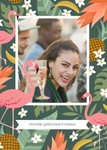 Een vrolijke fotokaart voor een jarige job. Op deze tropische kaart is de naam aanpasbaar.