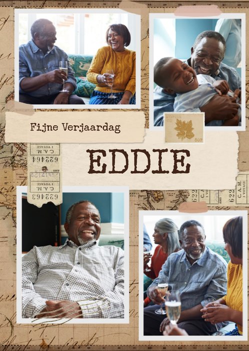 Fotokaart voor een jarige job met aanpasbare naam en de tekst: Fijne verjaardag.