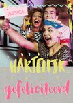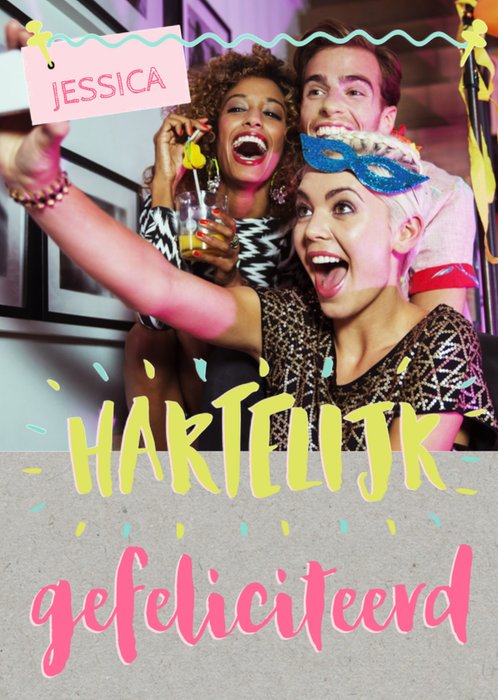 Leuke verjaardagskaart met foto en aanpasbare naam. Op de kaart staat: Hartelijk gefeliciteerd
