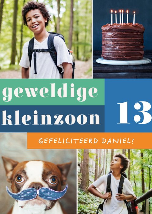Leuke fotokaart voor een jarige kleinzoon. Op de kaart met aanpasbare naam staat: Geweldige kleinzoon 13 gefeliciteerd [naam]
