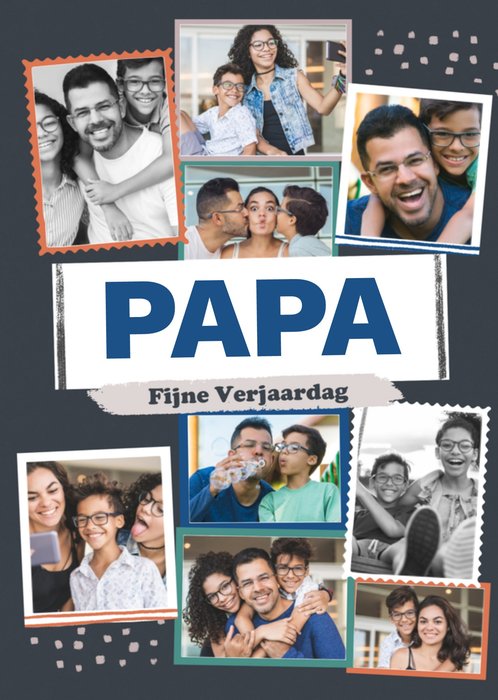 Leuke fotokaart met de tekst papa fijne verjaardag. De tekst is aanpasbaar.