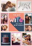 Leuke fotokaart met plek voor meerdere foto's. In het midden staat: To my wife on your birthday.