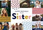 Vrolijke verjaardagskaart met de mogelijkheid om verschillende foto's toe te voegen. Op de kaart staat: Happy birthday to my sister Lottie X