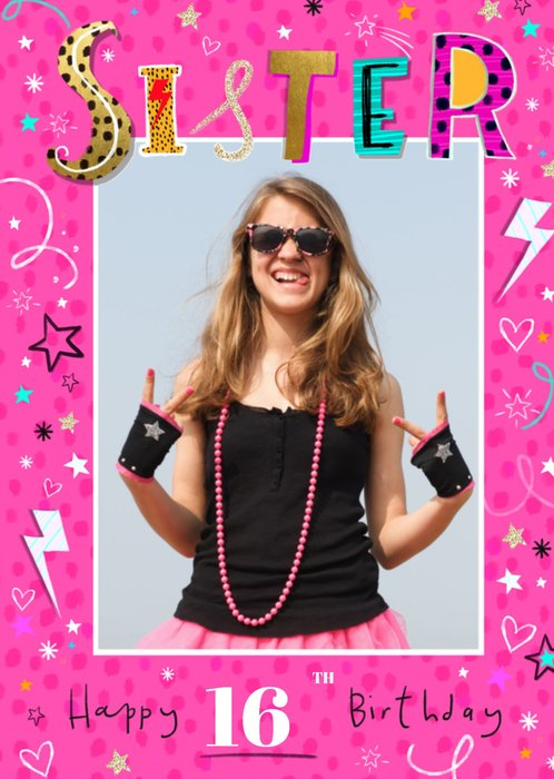 Leuke fotokaart voor een jarige zus met de tekst: To my sistr wishing you the most special birthday!
