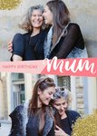 Leuke verjaardagskaart waar je twee eigen foto's aan toe kan voegen. Op de kaart staat: Happy birthday mum.