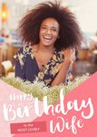 Leuke verjaardagskaart met de mogelijkheid om een foto toe te voegen. Op de kaart staat: Happy birthday to the most lovely wife.