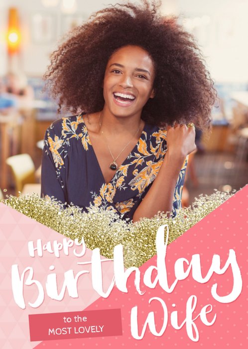 Leuke verjaardagskaart met de mogelijkheid om een foto toe te voegen. Op de kaart staat: Happy birthday to the most lovely wife.