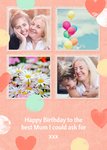 Verjaardagskaart met plek voor 4 foto's en de tekst: Happy birthday to the best mum I could ask for xxx. De tekst is aanpasbaar.