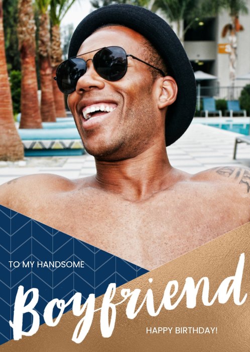 Leuke verjaardagkaart met foto en de tekst: To my handsome boyfriend happy birthday! Wenskaart van Greetz ontworpen door Greetz designers, volgens de laatste trends. Voeg je eigen foto('s), tekst, & versiering toe om de kaart extra persoonlijk te maken. Je kunt de kaart toevoegen aan je favorieten of tussentijds opslaan om deze later af te maken. Meer verjaardagskaarten zien? Check ze hier.
