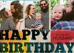 Stoere fotokaart met foto's en de tekst: Happy birthday to the best husband.