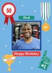 Stoere fotokaart met leeftijd en de tekst: Dad happy birthday.