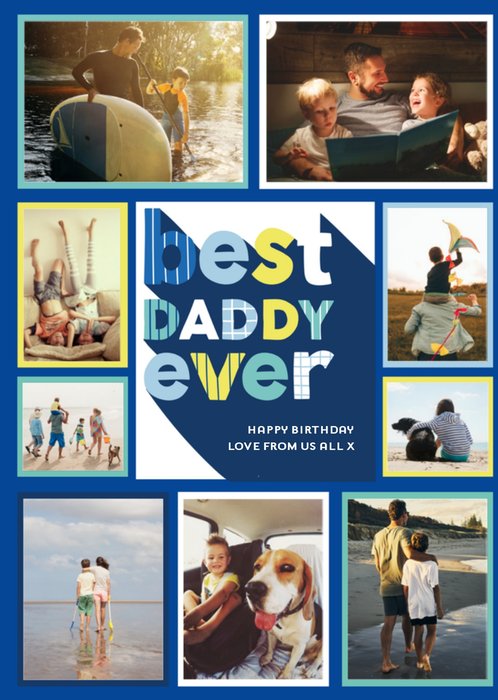 Leuke blauwe fotokaart met aanpasbare tekst.