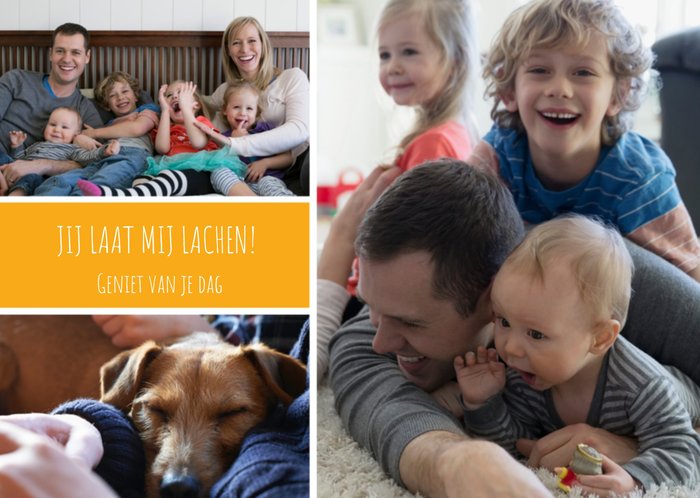 Fotokaart met de tekst: Jij laat mij lachen! Geniet van je dag.
