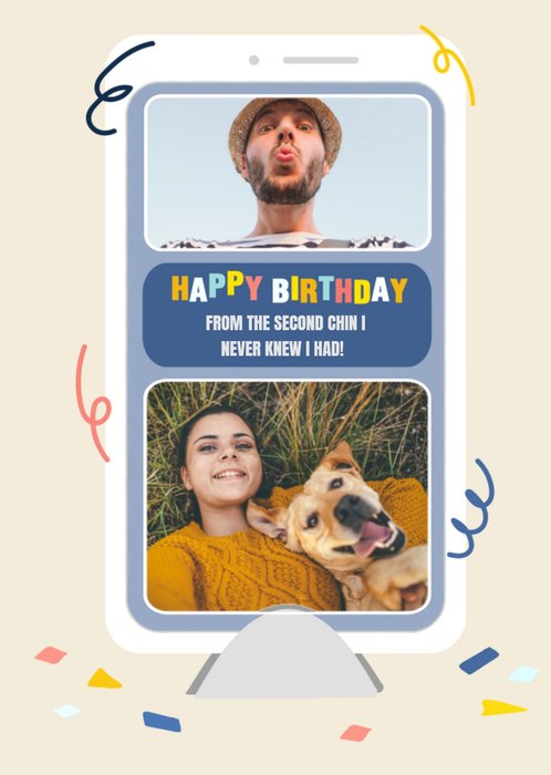 Grappige kaart met foto's en de tekst: Happy birthday from the second chin I never knew I had!
