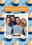 Smakelijke fotokaart met cupcakes en de tekst: gefeliciteerd