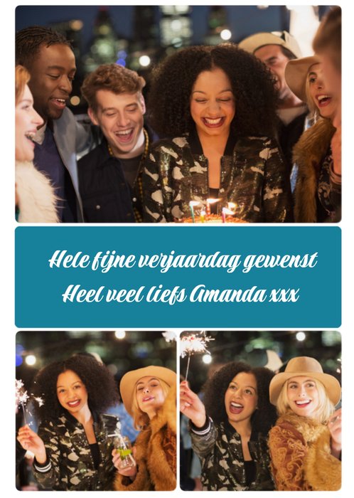 Verras de jarige met deze leuke fotokaart met aanpasbare tekst.