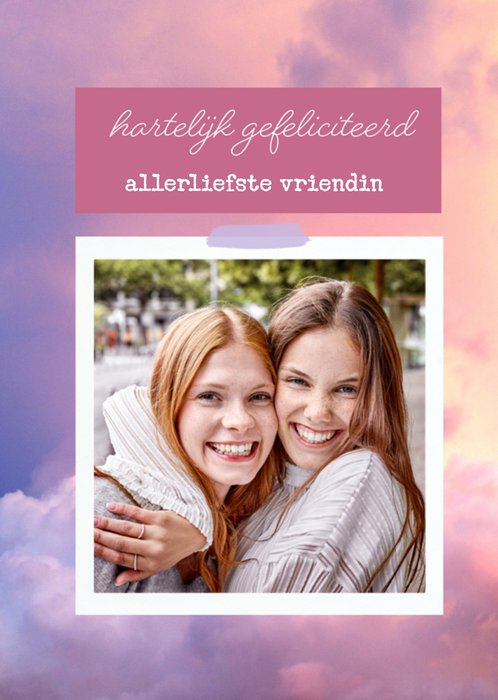 Leuke fotokaart met de tekst: Hartelijk gefeliciteerd allerliefste vriendin