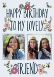 Fleurige verjaardagskaart met foto en de tekst: Happy birthday to my lovely friend.