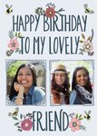 Fleurige verjaardagskaart met foto en de tekst: Happy birthday to my lovely friend.