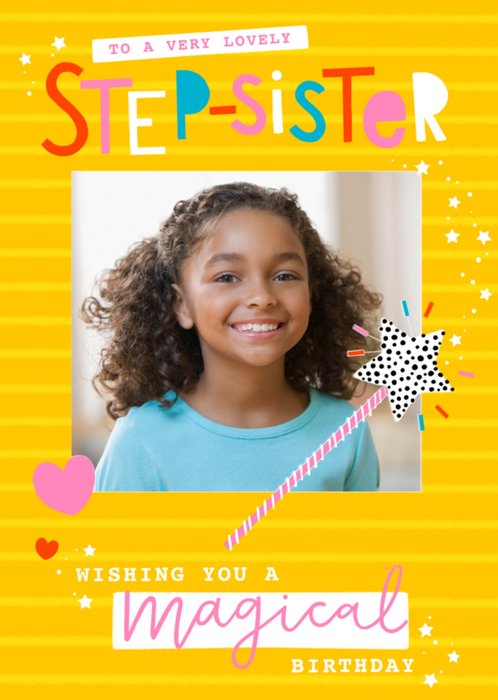 Leuke fotokaart met de tekst: To a very lovely step-sister wishing you a magical birthday.