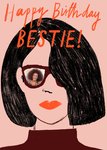 Leuke fotokaart met illustratie en de tekst: Happy birthday bestie!