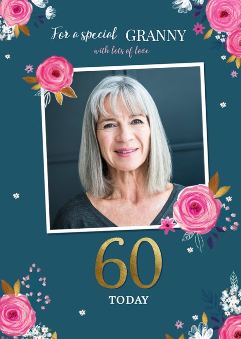 Leuke fotokaart met de tekst: For a special granny with lots of love 60 today