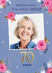 Leuke fotokaart met de tekst: Birthday wishes for my wonderful sister 70 today