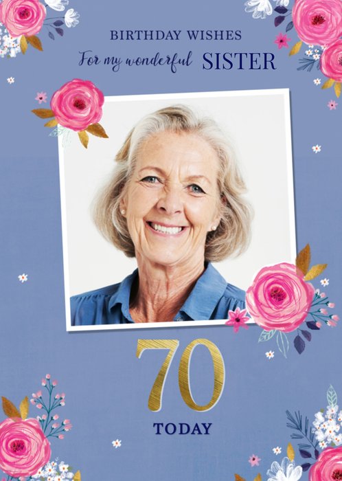 Leuke fotokaart met de tekst: Birthday wishes for my wonderful sister 70 today