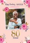 Leuke verjaardagskaart met de tekst: Happy birthday sister, with lots of love 80 today
