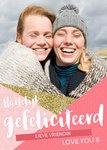Leuke fotokaart met de tekst: Hartelijk gefeliciteerd lieve vriendin love you x