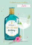 Verjaardagskaart met een grote fles wijn en de tekst: Celebrate on your birthday Auntie. Wishing you a gin-credible birthday.