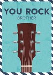 Op deze verjaardagskaart staat een gitaar en de tekst: You rock brother
