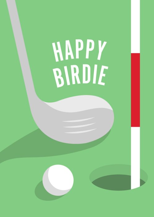Ken jij iemand die gek is op golfen? Stuur dan deze leuke verjaardagskaart met illustratie en de tekst: Happy birdie.