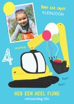 Er is er een jarig! Stuur daarom een verjaardagskaart van Greetz! Op deze leuke verjaardagskaart staat een graafmachine en de tekst: Voor een super kleinzoon. Heb een heel fijne verjaardag [naam].