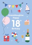 Feestelijke kaart met de tekst: Granddaughter, Happy 18th birthday.