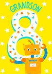 Leuke verjaardagskaart met een robot die het getal 8 vast heeft.