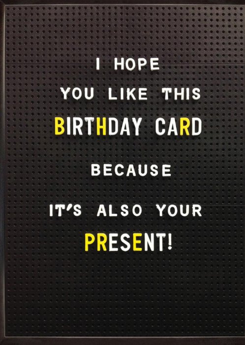 Grappige verjaardagskaart met de tekst: I hope you like this birthday card because it's also your present.