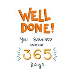 Grappige verjaardagskaart met de tekst: Well done! You survived another 365 days