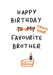 Grappige verjaardagskaart met de tekst: Happy birthday from you favourite brother.