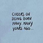 Grappige verjaardagskaart met de tekst: Cheers on being born many, many years ago...
