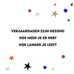 Grappige verjaardagskaart met de tekst: Verjaardagen zijn gezond, hoe meer je er hebt hoe langer je leeft.