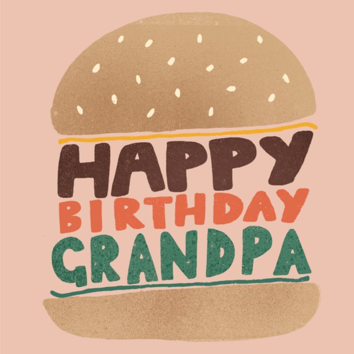 Leuke verjaardagskaart met een grote hamburger. Op de kaart staat: Happy birthday grandpa.