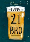 Leuke verjaardagskaart met een flink glas bier erop. Op de kaart staat: Cheers happy 21st bro.