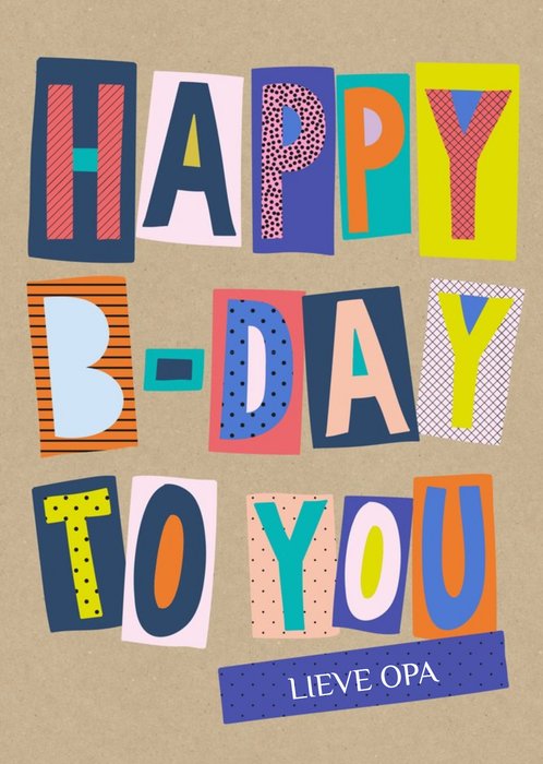 Kleurrijke en typografische verjaardagskaart met de tekst: 'Happy B-day to you'. Verras je Opa met deze leuke verjaardagskaart van Moonpig.