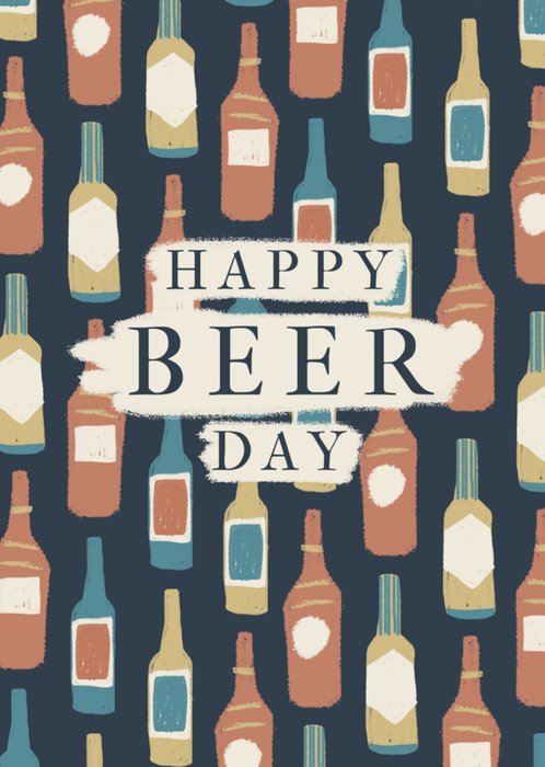 Typografische verjaardagskaart met bierflesjes en de tekst: 'Happy beer day'. Verras iemand met deze leuke verjaardagskaart.