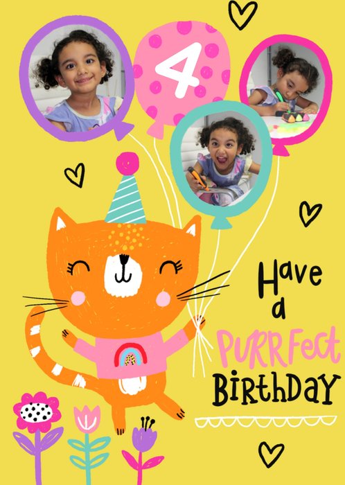 Greetz | Verjaardagskaart | Have A Purrfect Birthday | 4 jaar | Aanpasbare foto enn tekst