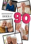 Met vijf foto-uploadgebieden binnen overlappende frames. Het getal '90' op de kaart heeft een vetgedrukt bubbellettertype.