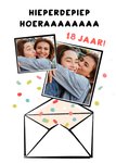 Met twee foto-uploadgebieden met een handgetekende envelop waar confetti uit schiet.