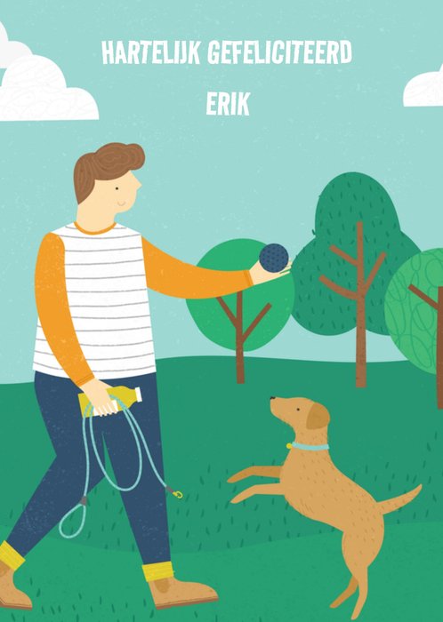 Leuke verjaardagskaart met illustratie en aanpasbare naam.