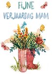 Verjaardagskaart met illustratie en de tekst: Fijne verjaardag mam